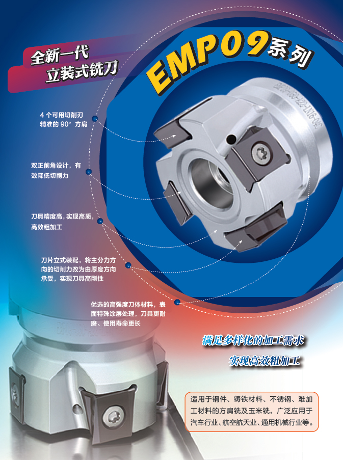 適用于鋼件、鑄鐵材料、不銹鋼、難加工材料的方肩銑及玉米銑,廣泛應用于汽車行業(yè)、航空航天業(yè)、通用機械行業(yè)等。