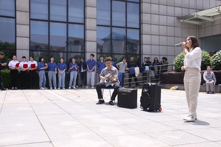 本次活動共舉辦兩場,由22名公司青年員工精心編排的5個精彩節(jié)目相繼在鉆石工業(yè)園和精密工具產(chǎn)業(yè)園登場表演,29日下午率先在鉆石工業(yè)園拉開帷幕。活動現(xiàn)場,不同風格的舞蹈、吉他彈唱、朗誦等節(jié)目依次上演。國風舞蹈《燕無歇》通過優(yōu)雅的舞姿和復古的音樂使現(xiàn)場觀眾感受到了唯美意境和國風韻味;吉他彈唱《老男孩》訴說著征途漫漫、惟有奮斗的青春歲月;街舞《前世今生》表演激情四射,律動十足,將現(xiàn)場氛圍推向小高潮;朗誦《讀中國》表演者心潮澎湃,表達了對祖國的熱愛和祝福;齊舞《向快樂出發(fā)》跳出了公司青年懷揣夢想,不懼艱難,敢于拼搏的決心。公司青年們盡情展示自我,為大家呈現(xiàn)了一場精彩絕倫的視聽盛宴,活動現(xiàn)場高潮迭起,掌聲連連。