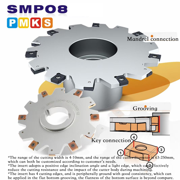 The cutting tool includes key connection and mandrel connection, which can be usedfor slot milling, down milling, parting, face milling and side milling.
