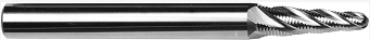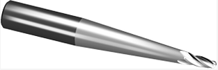 Small chamfering area at blade root, large overhang and poor rigidity, taper ball endmill is the choice for increase tool strength.